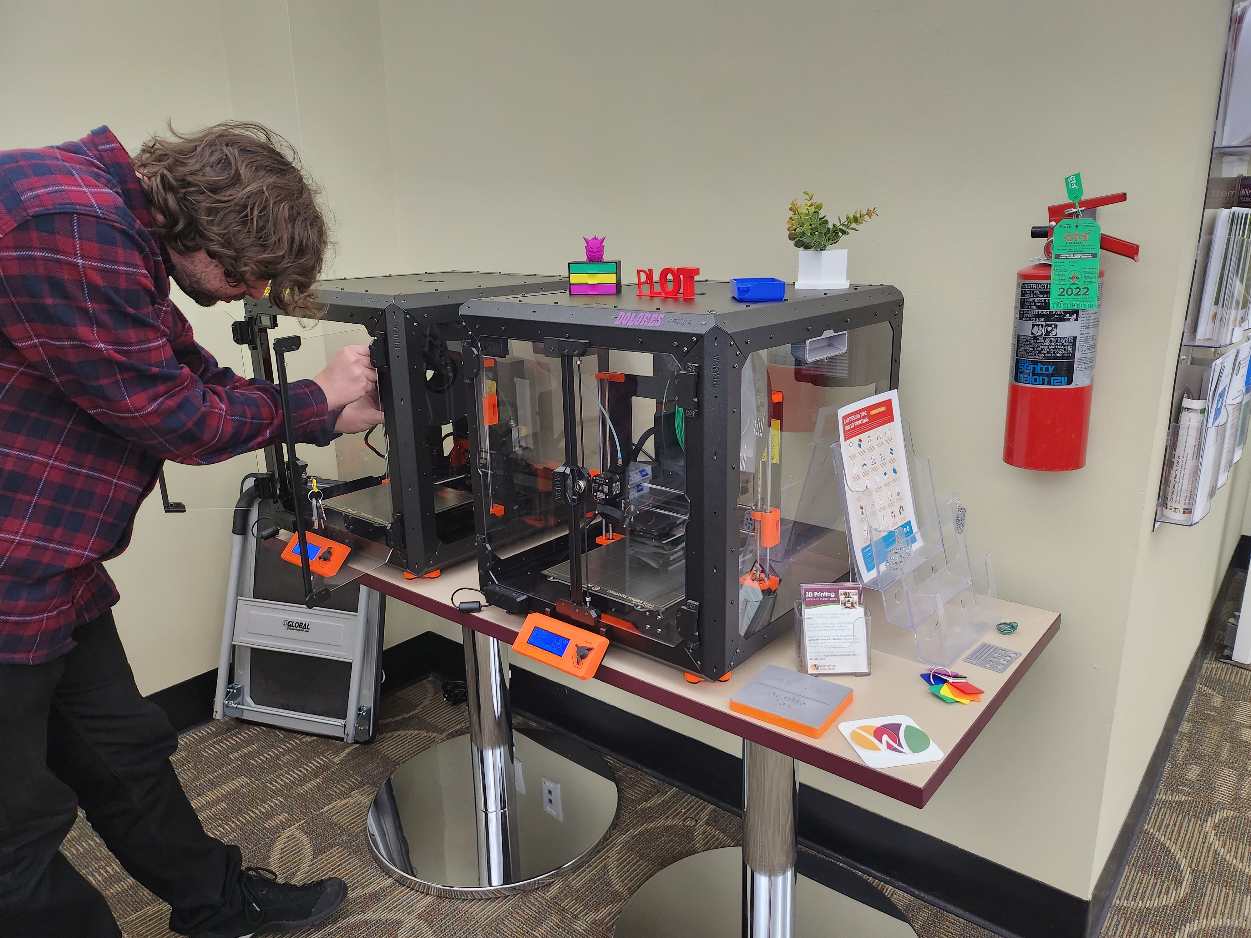 The Studio hosts Prusa i3 MK3S and i3MK3S+ 3D printers. Studio staff is available to help you get started on basic and free 3D designs on Tinkercad.com, and guide you through submitting your 3D print to the library.