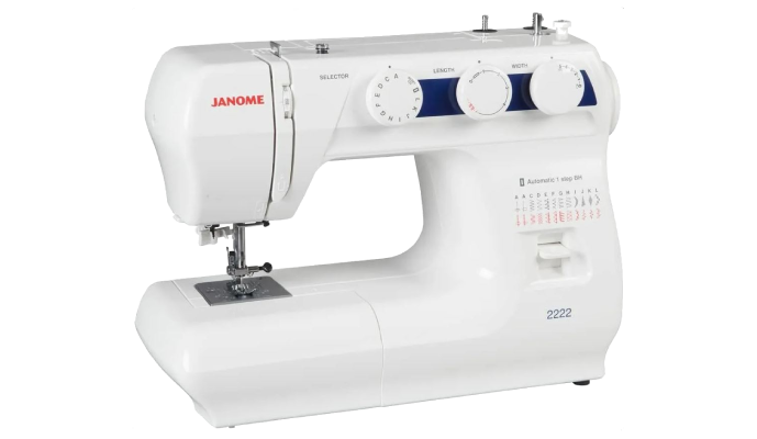 Accessories available for your sewing projects include black and white thread, fabric scissors, rotary cutters, measuring tools, marking chalk, seam rippers, needles (sizes 11, 14, and 16), presser feet (standard, zipper, sliding button hole, blind hem), iron and ironing board.