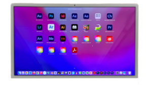 This station is equipped with a USB hub, headphones, and a Wacom drawing tablet, along with a wide selection of professional creative programs and tools including: