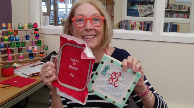 Schedule a time to get certified to use the embroidery machine or meet with a staff member for help on a project.