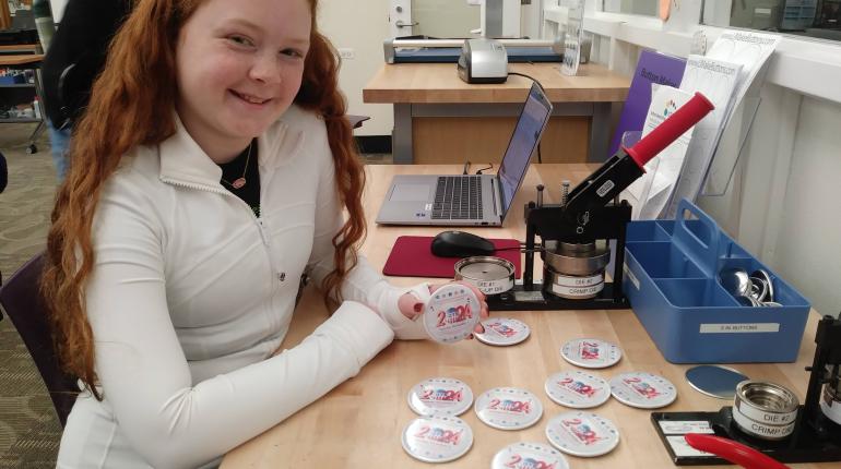 Design and assemble buttons or magnets either 1.5 inches or 3 inches in diameter.